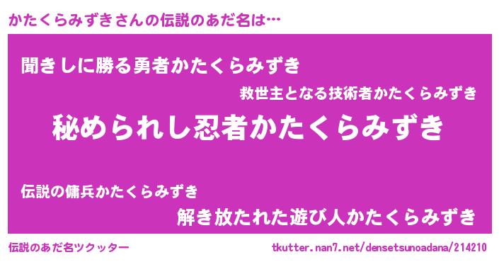 | 意味不明あだ名 | 『かたくらみずきフォーエバー』 |