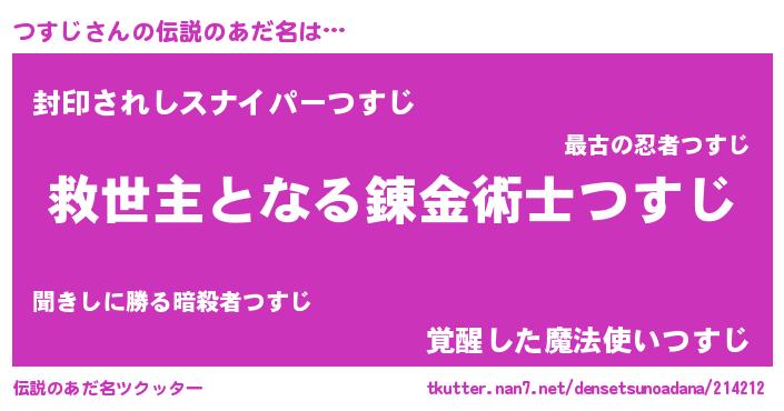 | ヒーロー風カッコイイあだ名 | 『慈愛の使者つすじ』『スーパーツスジ』 |