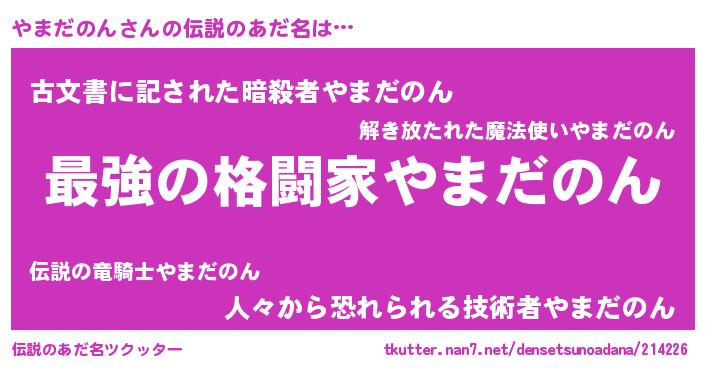 | 意味不明あだ名 | 『やまだのんフォーエバー』 |