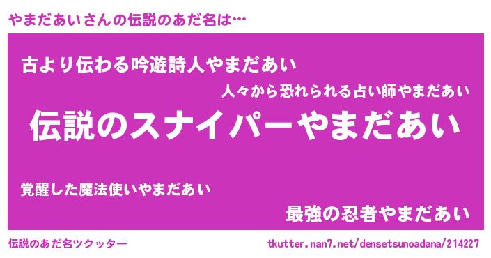 | 胡散臭い通販商品みたいなあだ名 | 『必ず成功する霊験あらたかなお札…その名も「やまだあい」』 |