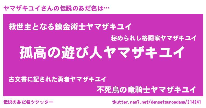 | ポケモン風あだ名 | 『ヒヤマザキユイ』『ヤックウザ』 |