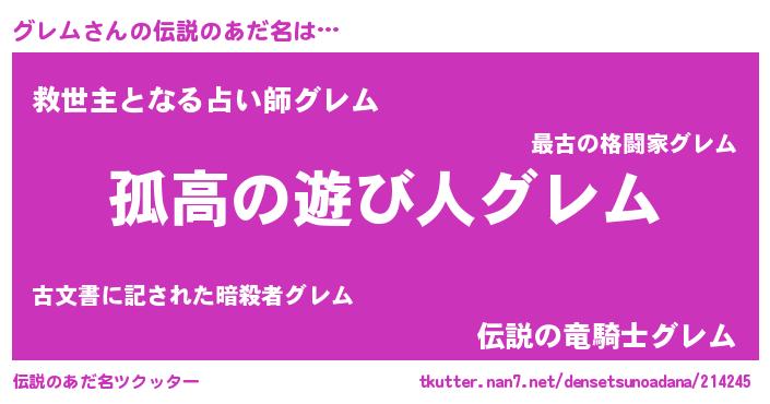 | 意味不明あだ名 | 『とにかく怪しいグレム』 |