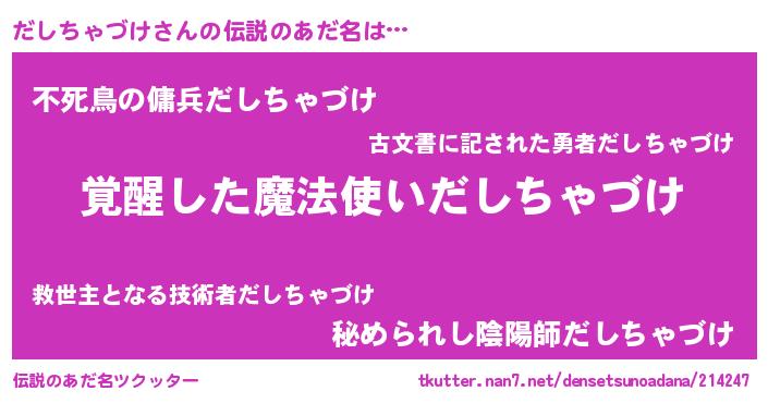 | ポケモン風あだ名 | 『ヒダシチャヅケ』『ダシチュウ』 |