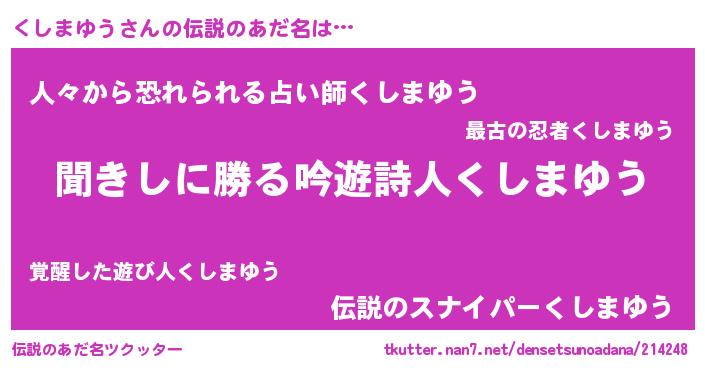 | ヒーロー風カッコイイあだ名 | 『仮面クシダー』『ネオクシマユウ』 |