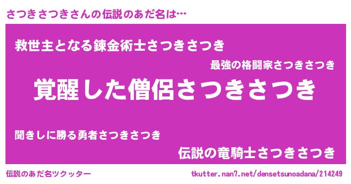| 意味不明あだ名 | 『とにかく怪しいさつきさつき』 |