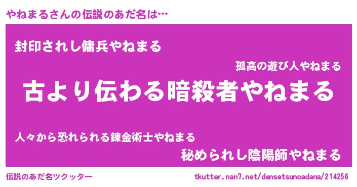 | 胡散臭い通販商品みたいなあだ名 | 『来世でも幸せになれる健康食品…その名も「やねまる」』 |
