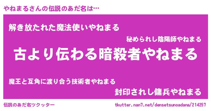 | ヒーロー風カッコイイあだ名 | 『ネオヤネマル』『暗黒騎士ヤネ』 |