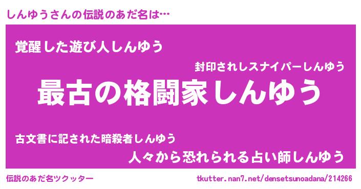 | ファンタジー風あだ名 | 『ゼシントゥ』『エターナルシンユウー』 |