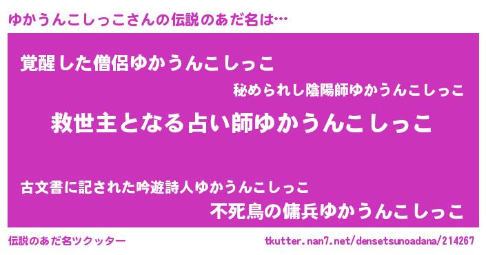 | 男性向けラノベタイトル風あだ名 | 『うちのゆかうんこしっこが世界を掌握している!』 |