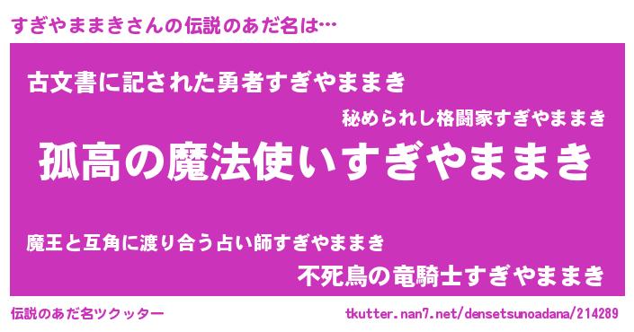| ヒーロー風カッコイイあだ名 | 『仮面スギダー』『幻影騎士スギ』 |