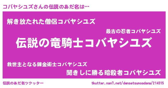 | 意味不明あだ名 | 『自称コバヤシユズ』 |