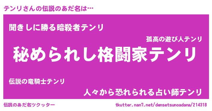 | ファンタジー風あだ名 | 『エターナルテンリー』『ヴァルテンーナ』 |