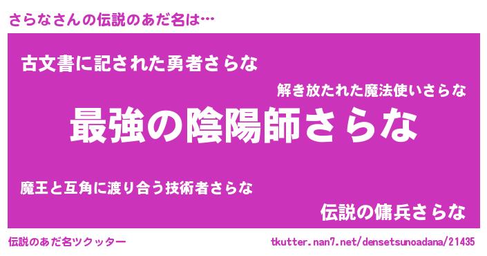 | ヒーロー風カッコイイあだ名 | 『ウルトラさらなマン』『ネオサラナ』 |
