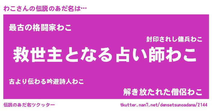 | 胡散臭い通販商品みたいなあだ名 | 『モンドセレクションを受賞したイリジウム磁石…その名も「わこ」』 |