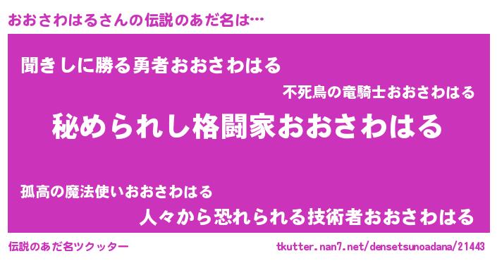 | 男性向けラノベタイトル風あだ名 | 『やはりおおさわはるの青春ラブコメはまちがっている 』 |