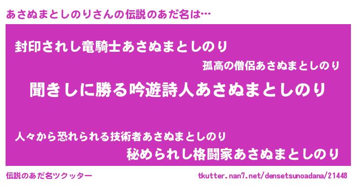 | 意味不明あだ名 | 『永久保存あさぬまとしのり』 |