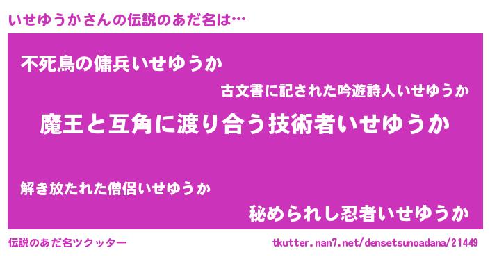 | ヒーロー風カッコイイあだ名 | 『仮面イセダー』『天空の使者いせゆうか』 |