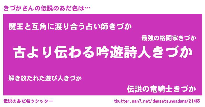 | 女子向けラノベタイトル風あだ名 | 『きづかの契約王妃』『きづか恋絵巻』 |