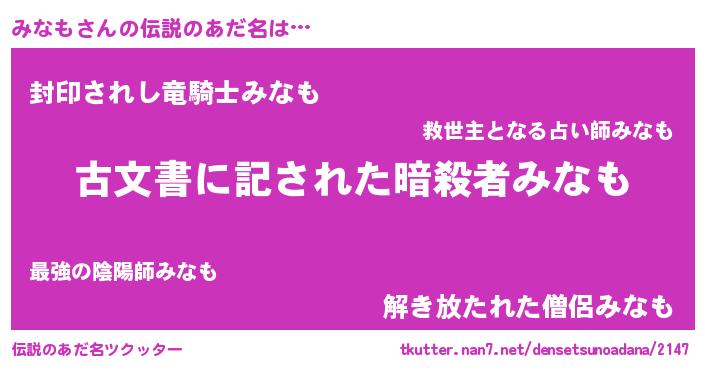 | ファンタジー風あだ名 | 『カークミナラー』『ユリミナヴァット』 |