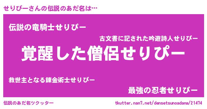 | ヒーロー風カッコイイあだ名 | 『仮面セリダー』『幻影騎士セリ』 |