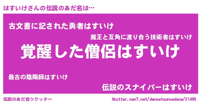 | 意味不明あだ名 | 『とにかく怪しいはすいけ』 |
