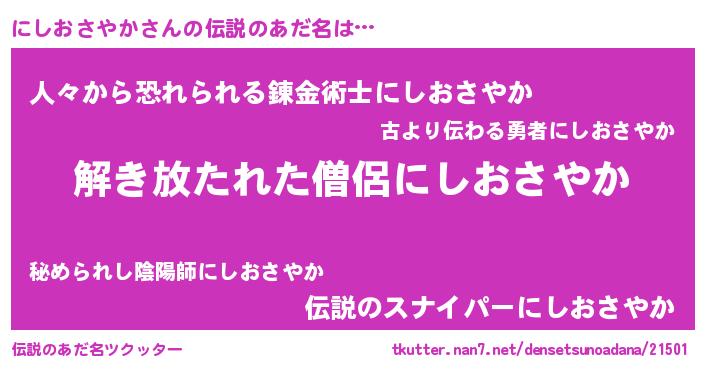 | 意味不明あだ名 | 『とにかく怪しいにしおさやか』 |