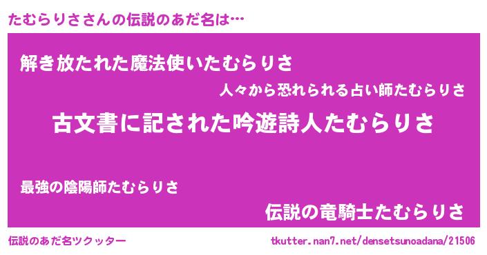 | ヒーロー風カッコイイあだ名 | 『仮面タムダー』『ネオタムラリサ』 |