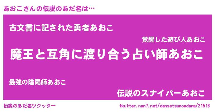 | ヒーロー風カッコイイあだ名 | 『愛の使者あおこ』『ネオアオコ』 |