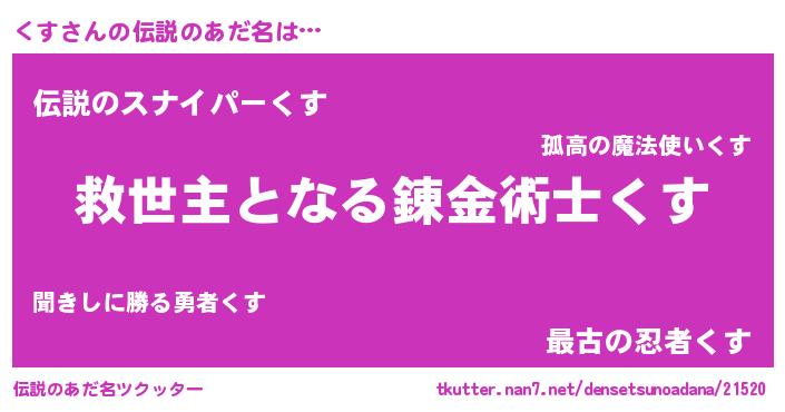 | 女子向けラノベタイトル風あだ名 | 『死神くすの再婚』『くすアンティーク』 |