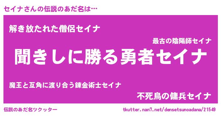 | ヒーロー風カッコイイあだ名 | 『ネオセイナ』『幻影騎士セイ』 |