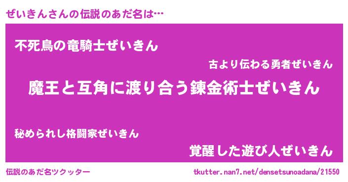 | 自動車の名前っぽいあだ名 | 『ゼンR』『フェゼーイ』『ゼイティマ』 |