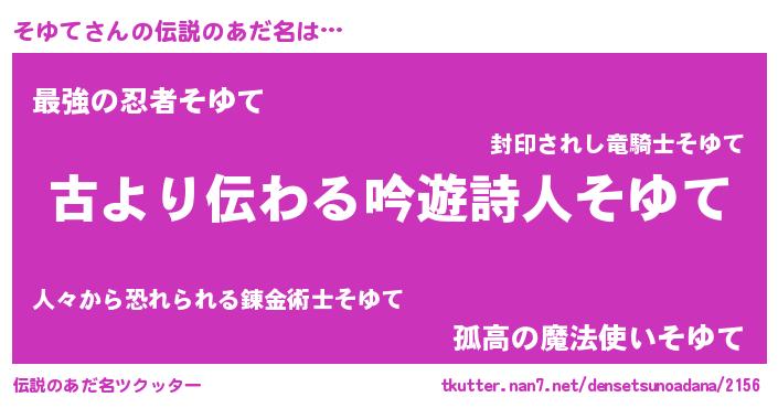 | 意味不明あだ名 | 『自称そゆて』『永久保存そゆて』 |