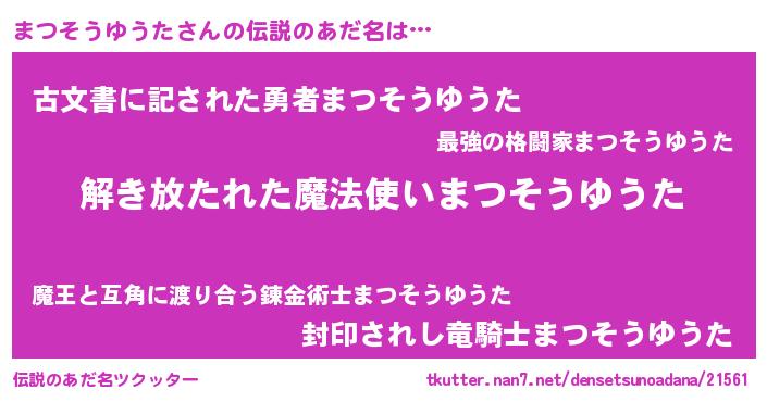 | 男性向けラノベタイトル風あだ名 | 『まつそうゆうたの嫁は女の子じゃないと思った?』 |