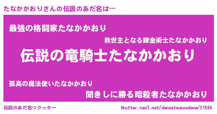 | 男性向けラノベタイトル風あだ名 | 『タナカカオリスレイヤー』 |