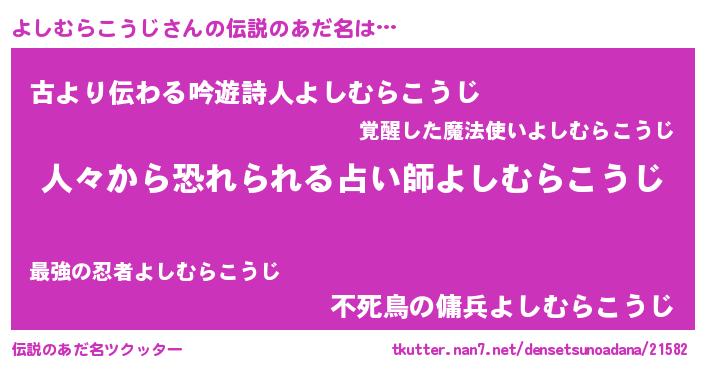 | 意味不明あだ名 | 『住所不定無職よしむらこうじ(47歳)』 |