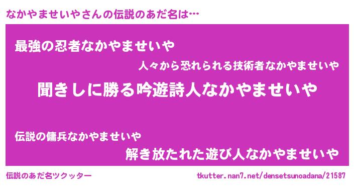 | 意味不明あだ名 | 『永久保存なかやませいや』 |