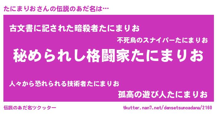 | 肩書あだ名 | 『たにまりお大佐』『たにまりお閣下』 |