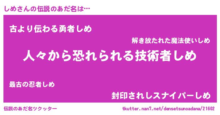 | 胡散臭い通販商品みたいなあだ名 | 『100人中100人が認めたマグネット磁石…その名も「しめ」』 |