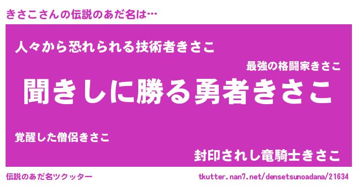 | 意味不明あだ名 | 『永久保存きさこ』『なめこ科きさこ属』 |
