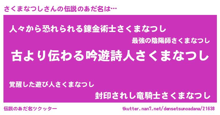 | 女子向けラノベタイトル風あだ名 | 『さくまなつしの契約王妃』 |