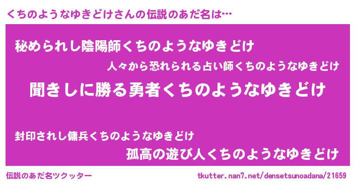 | 意味不明あだ名 | 『永久保存くちのようなゆきどけ』 |