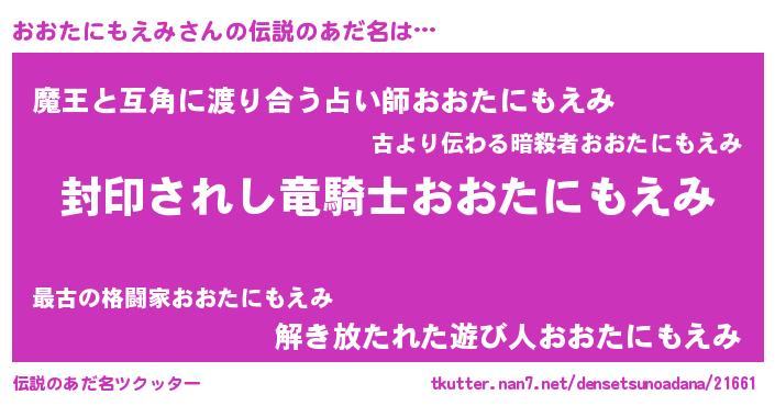 | ヒーロー風カッコイイあだ名 | 『究極戦士オオタニモエミ』 |