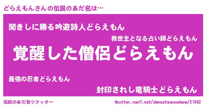| 男性向けラノベタイトル風あだ名 | 『どらえもんの嫁は女の子じゃないと思った?』 |