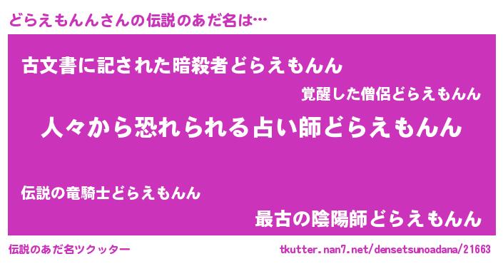 | ヒーロー風カッコイイあだ名 | 『正義の使者どらえもんん』 |