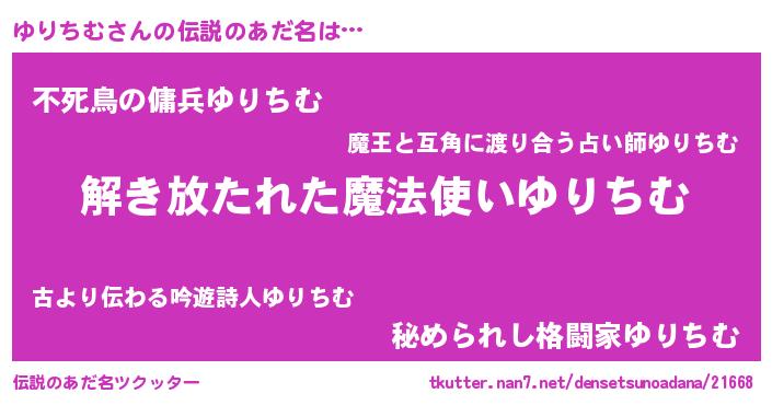 | 意味不明あだ名 | 『住所不定無職ゆりちむ(1歳)』 |