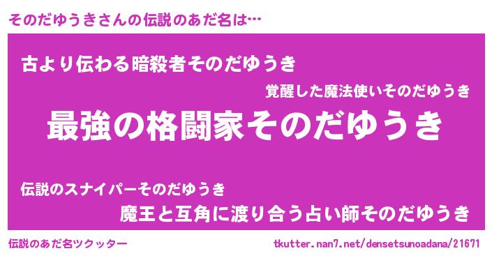 | ファンタジー風あだ名 | 『エターナルソノダユウキー』 |