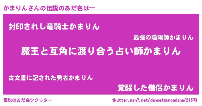 | 女子向けラノベタイトル風あだ名 | 『かまりん恋絵巻』 |