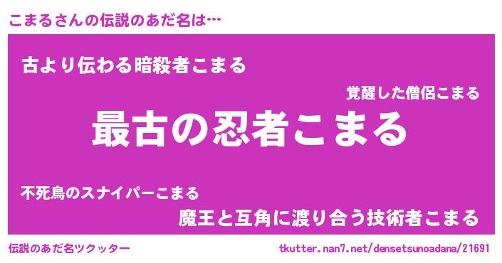 | 男性向けラノベタイトル風あだ名 | 『うちの娘の為ならば、俺はもしかしたらこまるも倒せるかもしれない。』 |