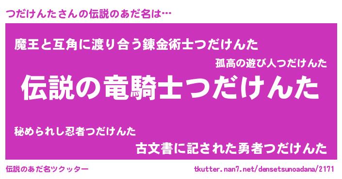 | 男性向けラノベタイトル風あだ名 | 『緋弾のツダケンタ』『つだけんたの憂鬱』 |