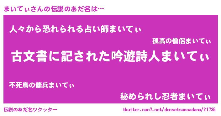 | 意味不明あだ名 | 『永久保存まいてぃ』『自称まいてぃ』 |